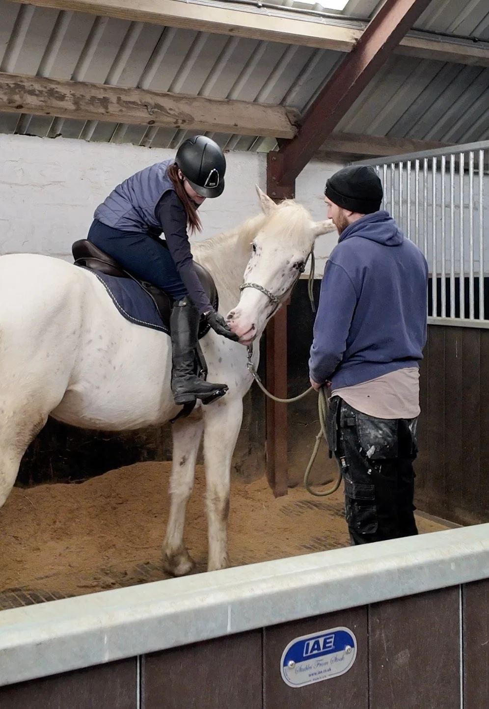 Velia would have crumbled in a puddle of fear if this had been attempted in November, so to see her here now fills me with pride. We could've got here a month ago, but to be honest, I think the time has done her good! I got on and off from the ground, then with a leg up, and then squeezed to go (with voice aid too) and halted with my seat to stop, and she read each one like an old pro. Full disclosure, when I put my foot in the stirrup the first time, I did have a brief thought of "I'm too old for this sh*t" at the riskiness of starting babies again at 30+, but I'm glad the groundwork paid off 😅