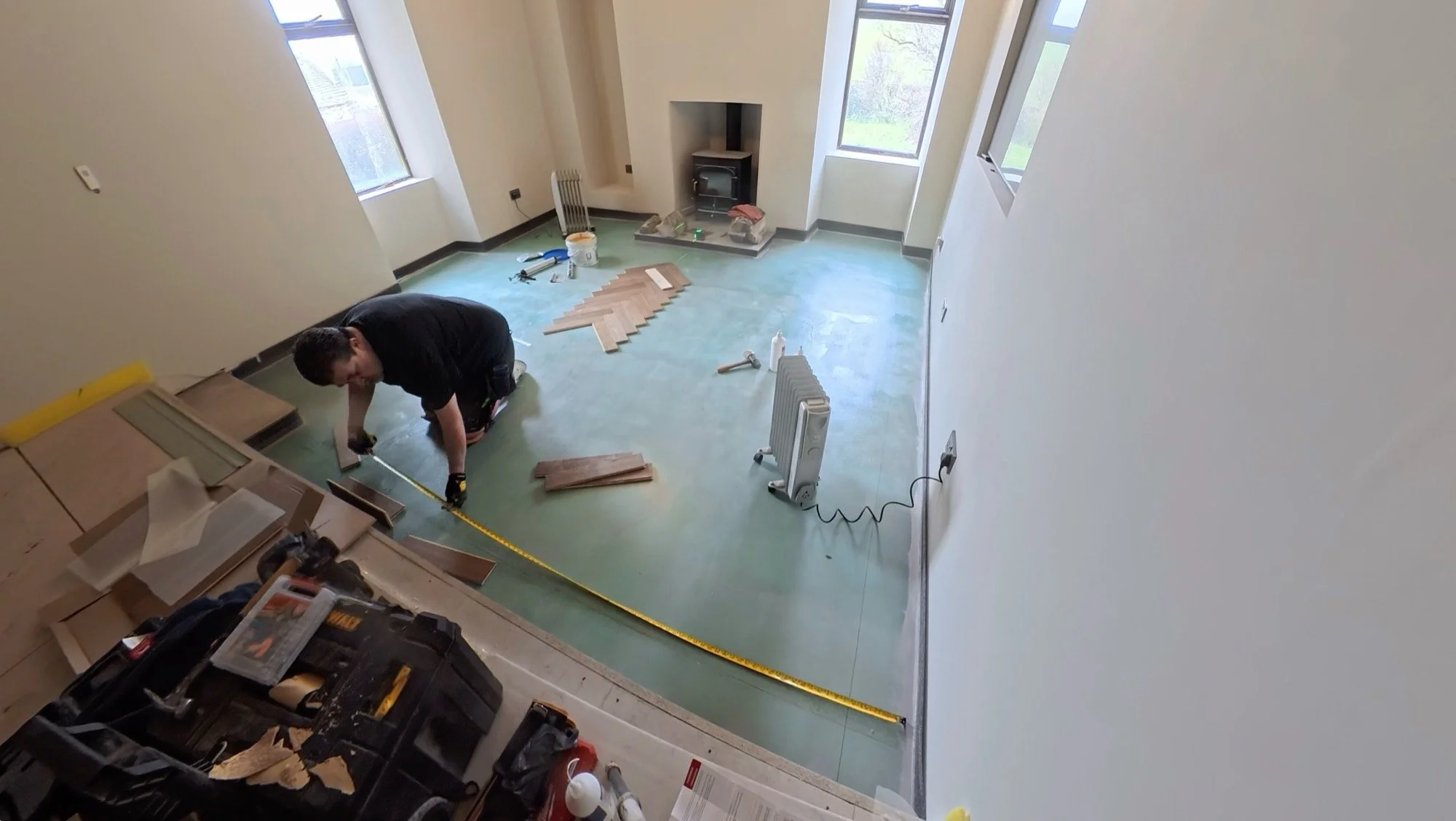 Now, I’ve never spent more than £20 a square metre on anything in my life (it baffles me that this is a budget option for the brand at £99 per sqm 😳) so the task of laying a (to us) luxury floor was handed straight to professionals, Partnership Flooring from Glasgow, and they arrived this week. Dan said absolutely no way was he going to try it - it wasn’t worth the risk.