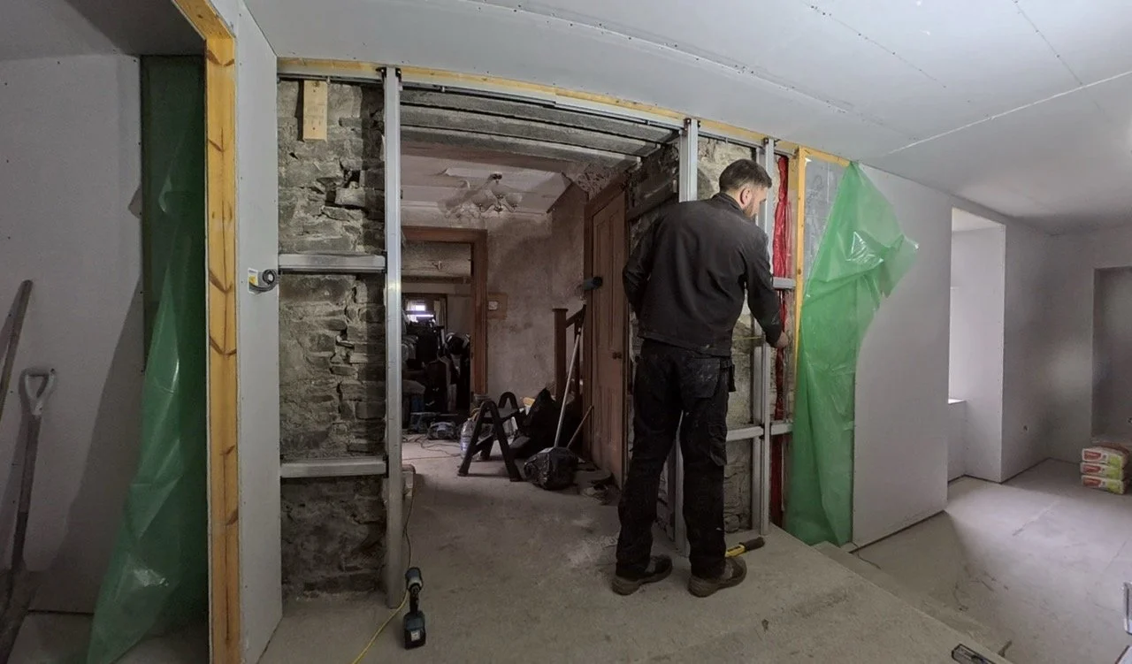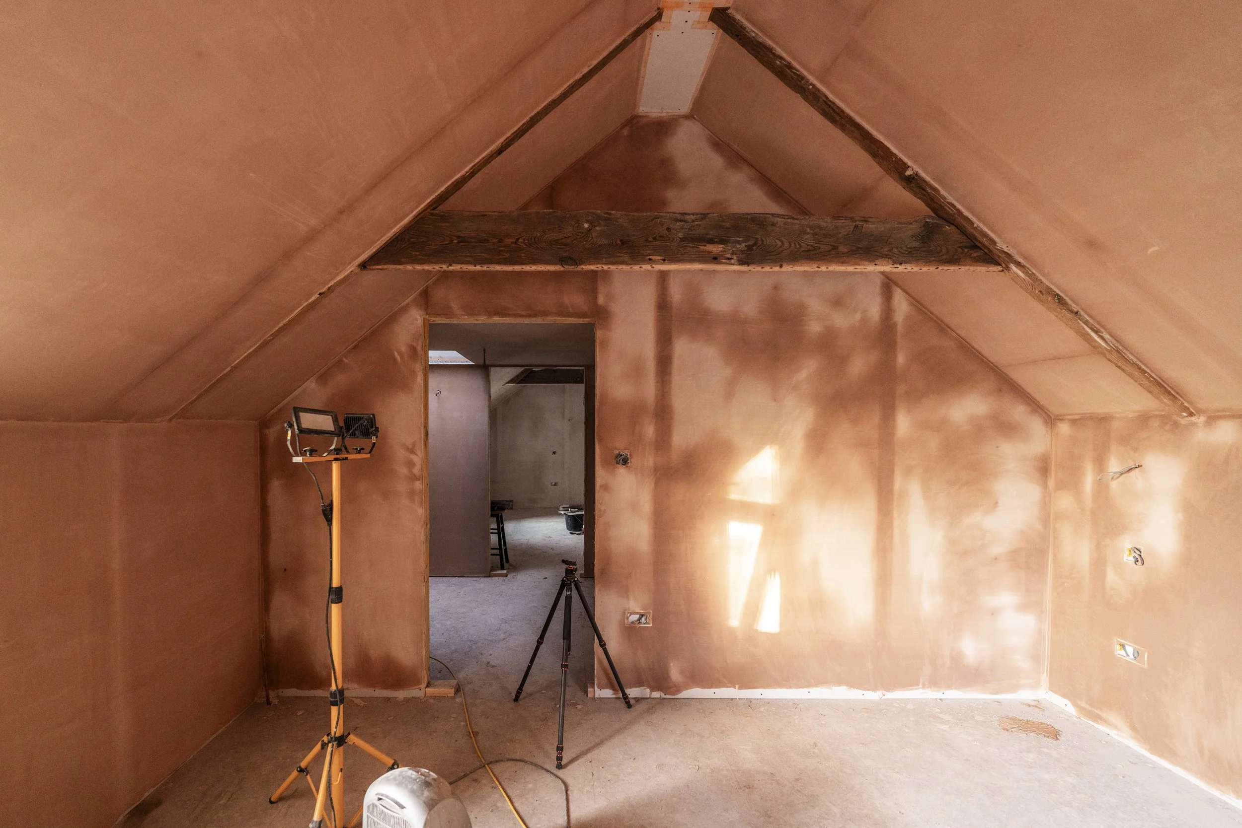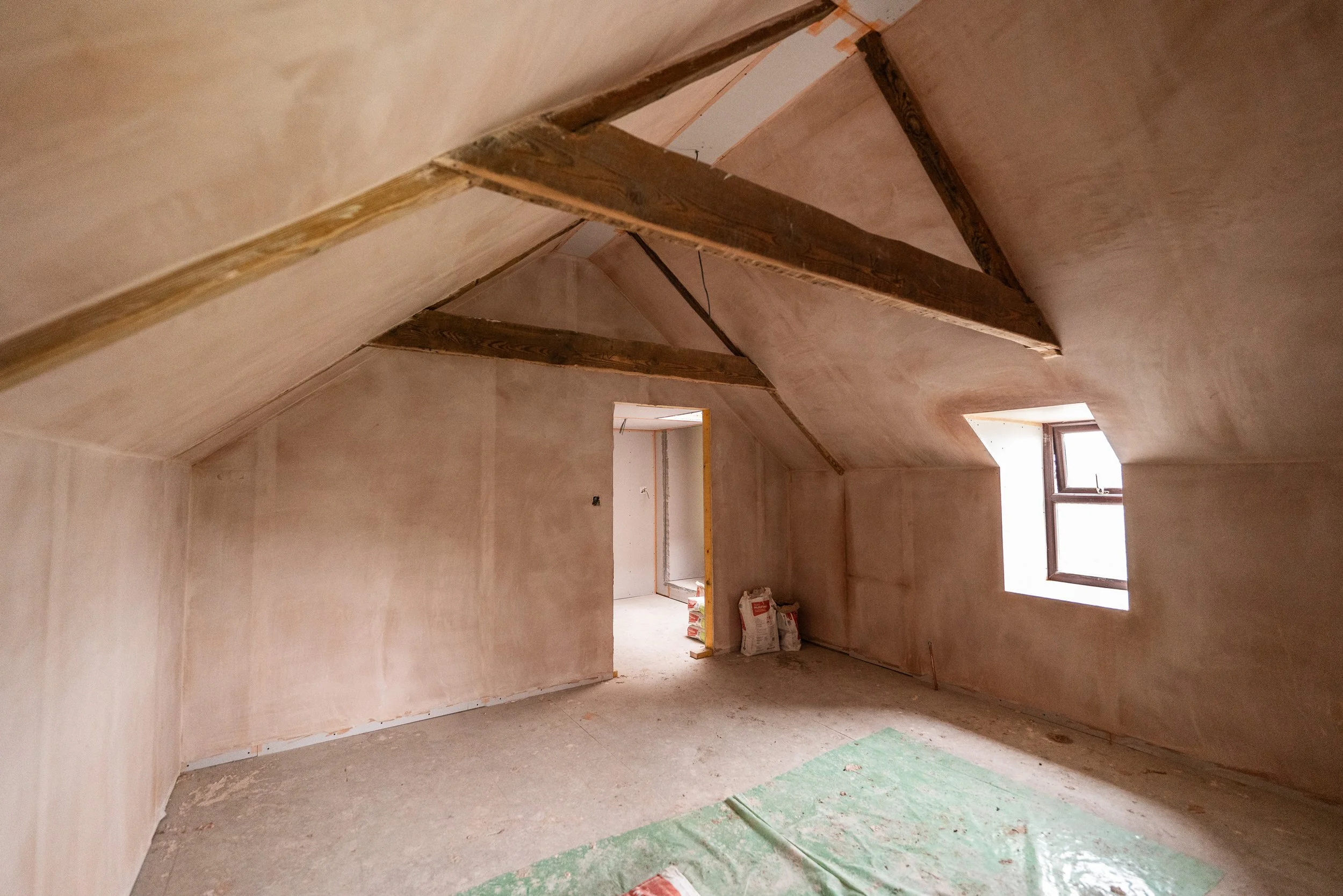 Sadly though, a full day was not on the cards, leaving some small areas unplastered. Dan will take over and finish these bits ASAP. The good news is that the walls are all complete to the point that second fix can begin. We've already booked those trades in, so it’s just a bit of a wait until then. In the meantime, we’re going to see if there’s a possibility of getting some of the underfloor heating pipes down ahead of the plumber, but we might opt to hold until we’re a little further along with the other areas of the house too.