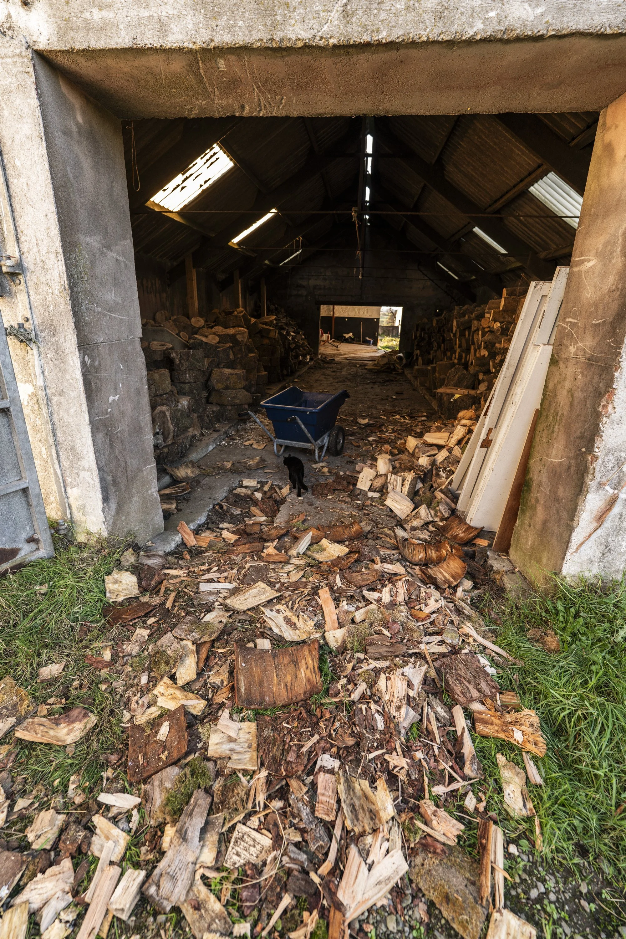 Then I disappeared and left Dan do it. Farmer Ryan did us yet another solid and dropped us off a tractor and log splitter, which we were now in desperate need of. After a full day splitting, Dan had a mini mountain of split timber, which filled a couple of bays in the log store. The strange part for me is that this mountain is huge, and the log volume looks considerably larger than it did before it was split. Not quite sure how that works, but thank goodness a huge chunk of this is split, as it means Dan doesn’t need to split logs with an axe every other day to keep the fires stocked.
