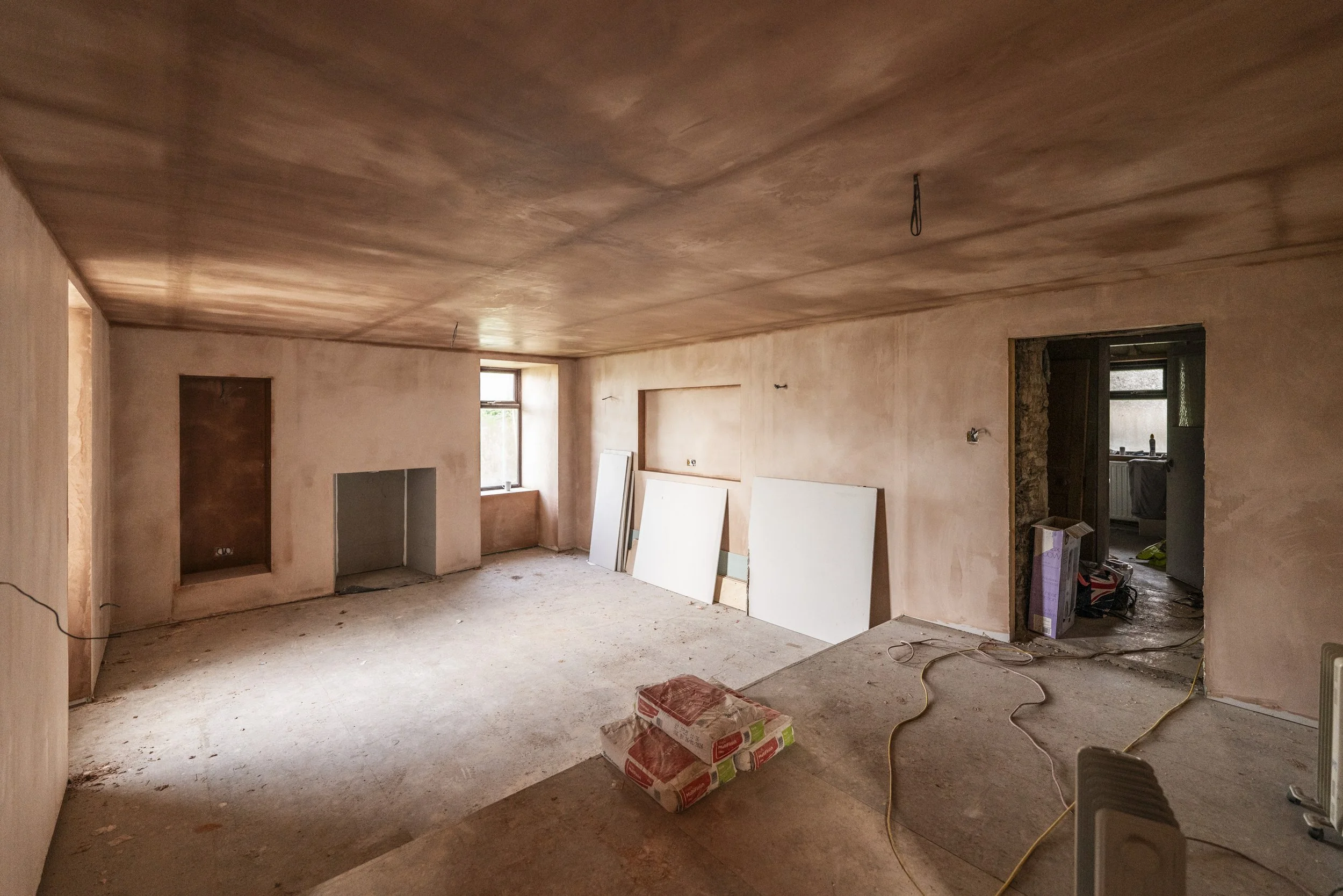 We were about at breaking point this week with the slow progress happening in the farmhouse due to delays. There was supposed to be a full weekend of plastering last week and it ended up being just a few hours, albeit to do the big walls in the living room – and the finish is very good!