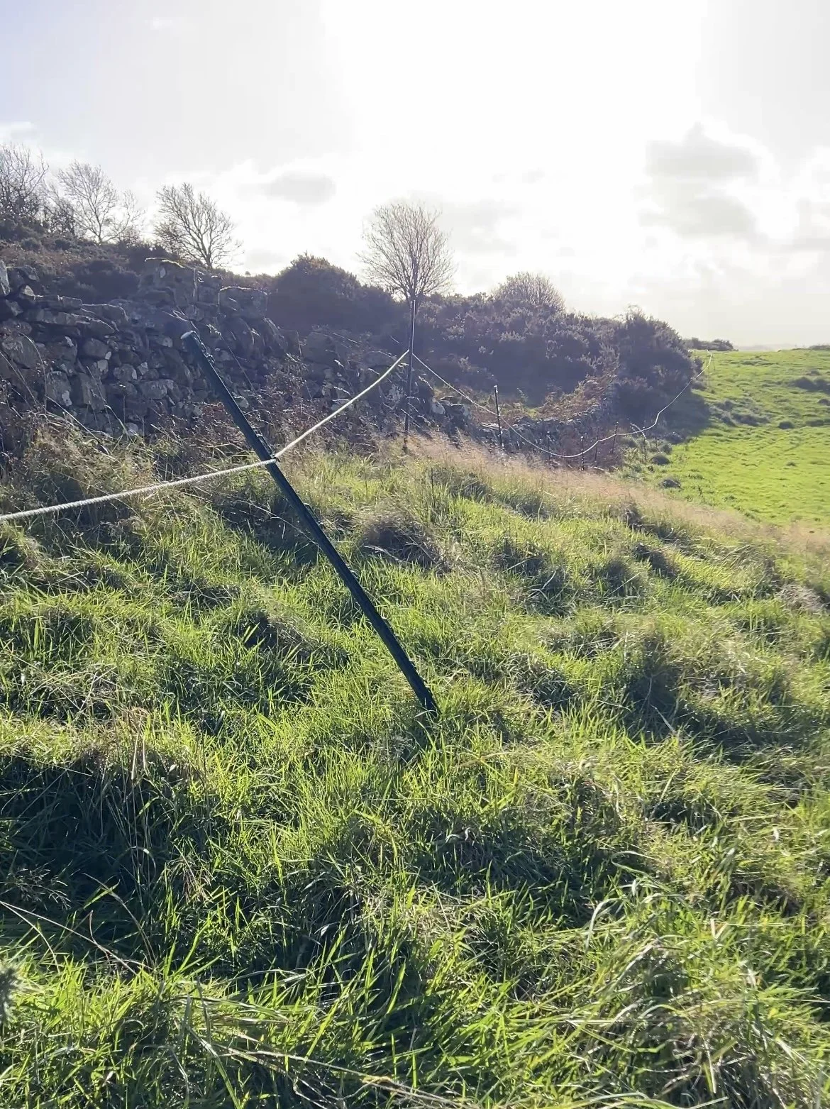 The secondary gate up here helps us out if the winter gateway on the back track becomes too wet, and also gives the quad safer access into the field. This strip has a cliff where it meets the lower holding area near the farmhouse, and although it probably is passable by quad, any breaking for a horse in the way or a loss of momentum gives this bank a high risk of a quad flip. Farmers know how dangerous this can be, especially on such a steep incline, so another access point is helpful!