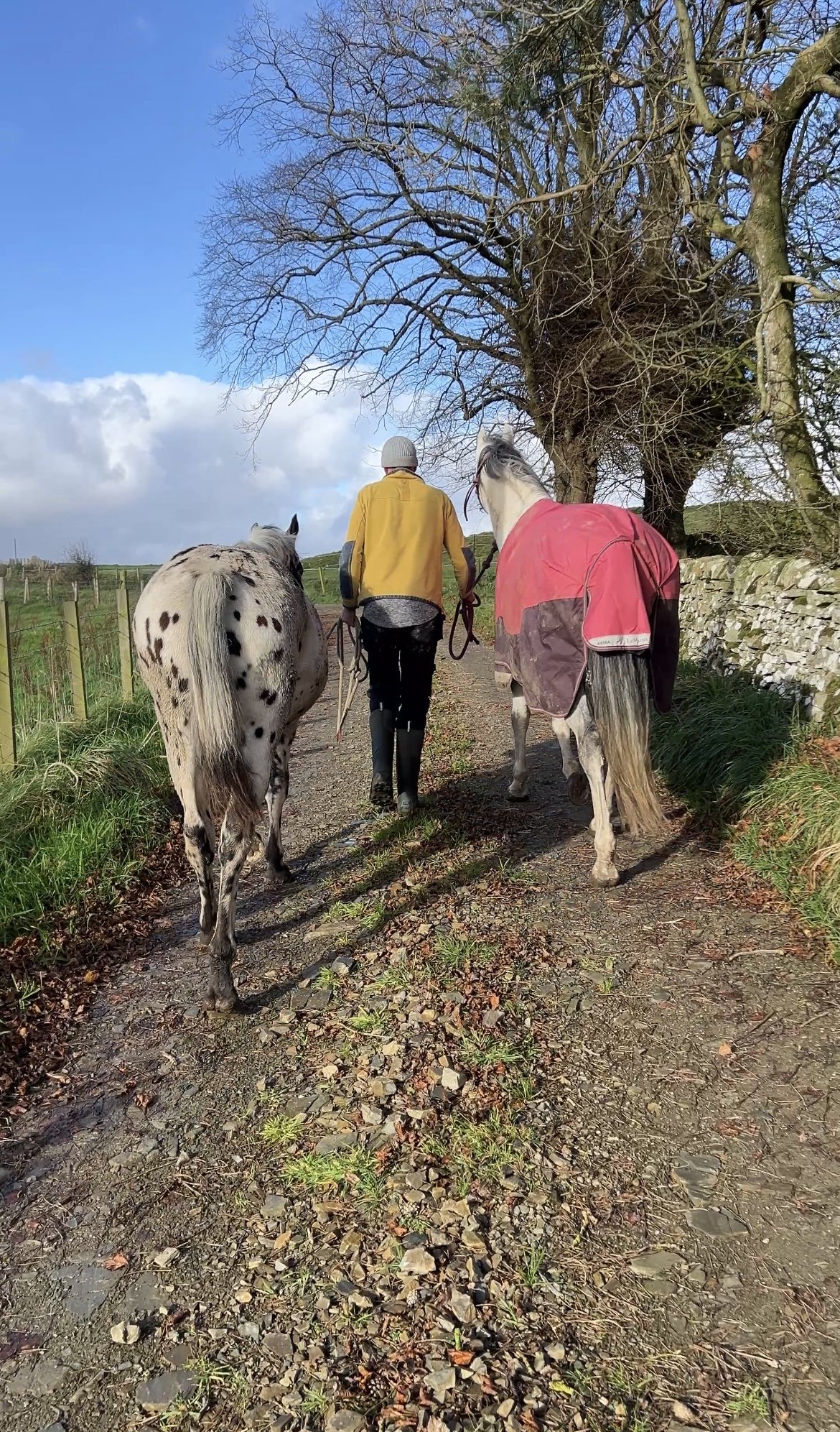 There will be a question over why they need to get used to this grass if they’re just getting moved to the top strip later. The reasoning is that a large part of their winter strip contains this rich grass, we know the horses will want to eat it more than the rougher stuff, so it’s important she’s adjusted to it before they move onto the top of the field full time.