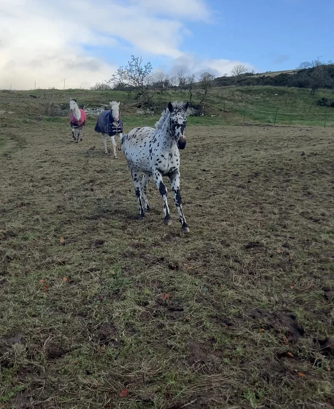 We then began the mud monsters introduction to the much richer, fertilised and slurried grass. Eating was their priority, but Connie did have a small blast in this big space. She’s very hairy already and enjoys rolling in the muddiest, wettest parts of the fields! She also doesn’t really need any good grass, but we’ll manage her weight as the weather turns.