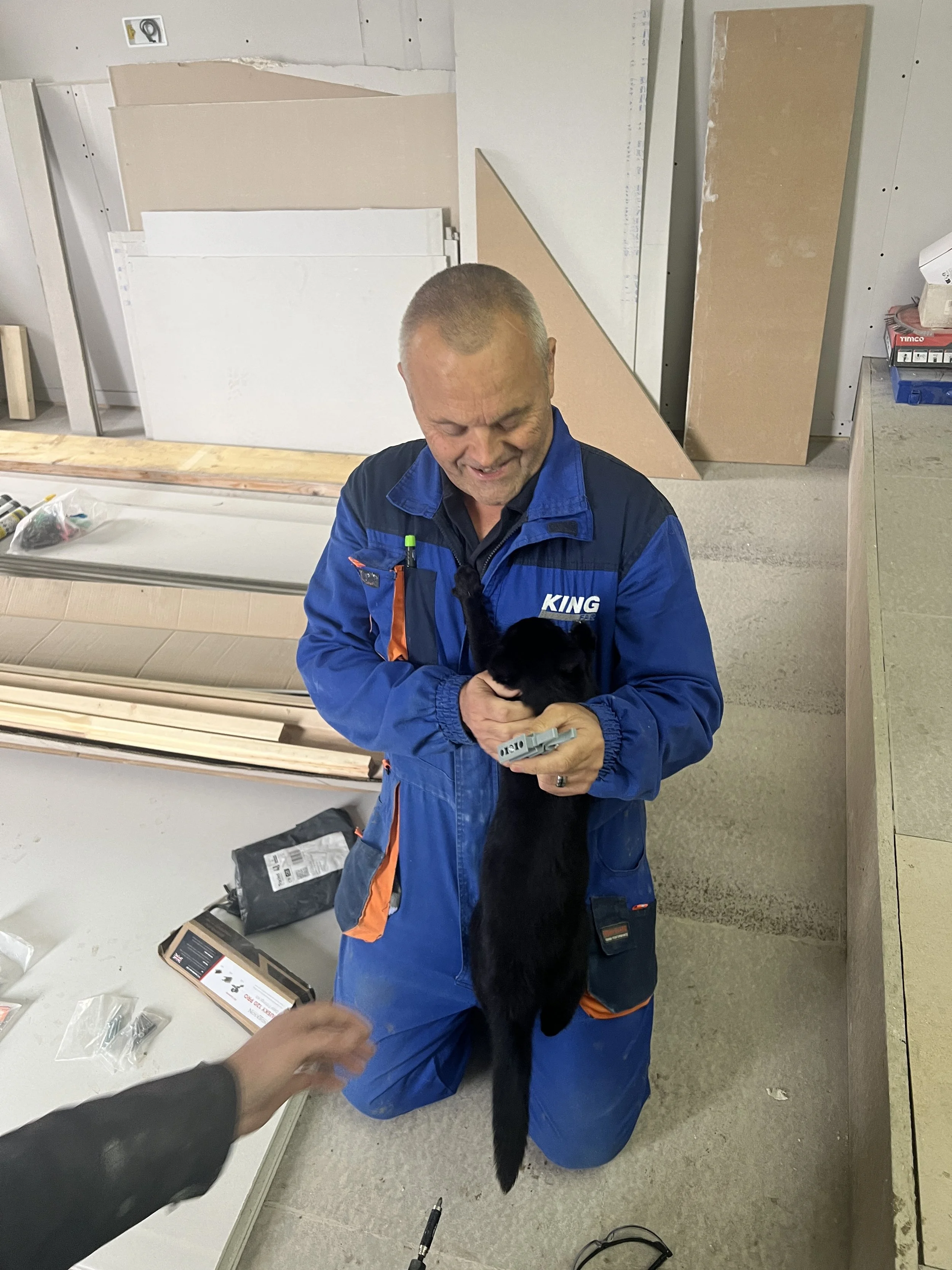 The only other thing to add is the door lining kits and swanky door knobs came, which made Dan’s day, as he picked them out. An unexpected delivery also came, one that was due next Monday because the rooms would be more ready, and that was the underfloor heating. Dad took the delivery whilst we were out shooting on Thursday, and he popped it into the only available non-working space; the chaos filled kitchen.
